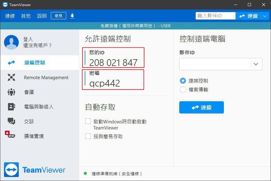 將您的【遠端協助ID】與【密碼】,提交給客服人員即可為您進行遠端協助服務。